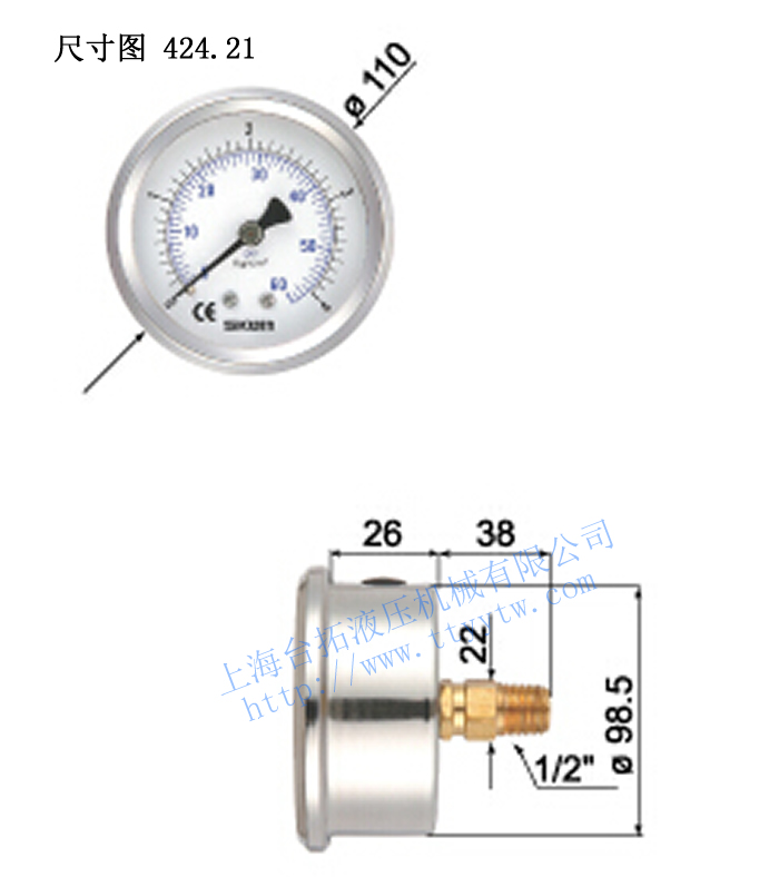 臺(tái)灣協(xié)鋼SKON充油式壓力表424.21尺寸圖