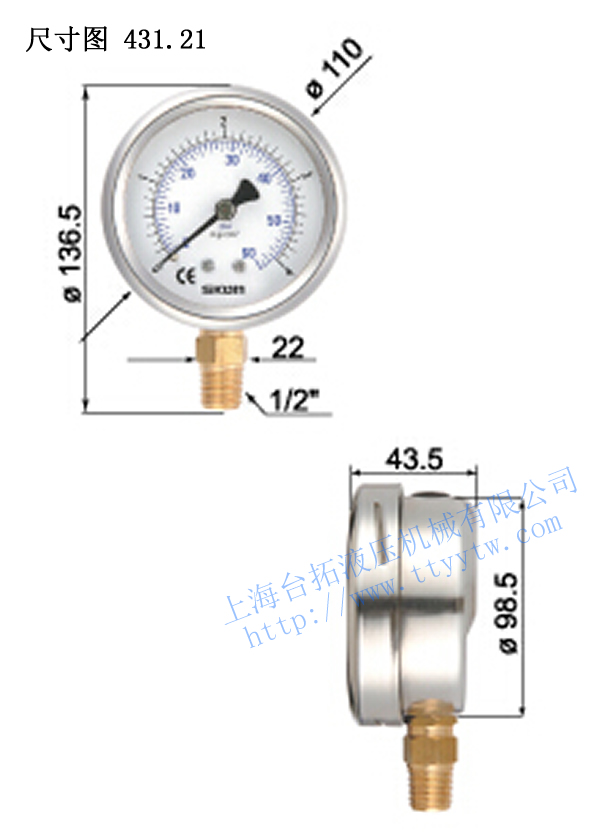 臺(tái)灣協(xié)鋼SKON充油式壓力表431.21尺寸圖