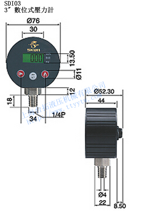 臺灣協(xié)鋼SKON數(shù)位壓力表SDI03尺寸圖