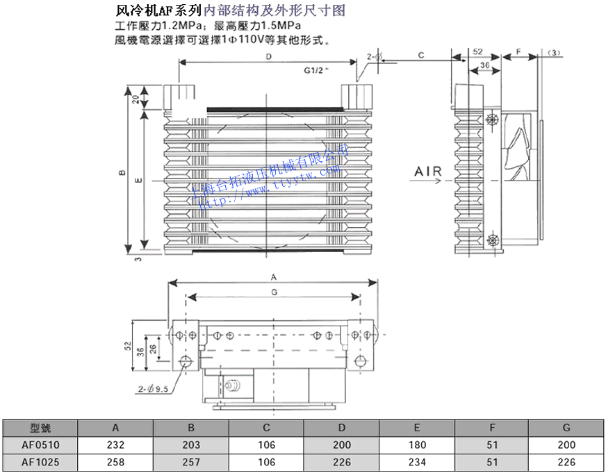 風(fēng)冷機(jī)AF0510,AF1025內(nèi)部結(jié)構(gòu)及外形尺寸圖