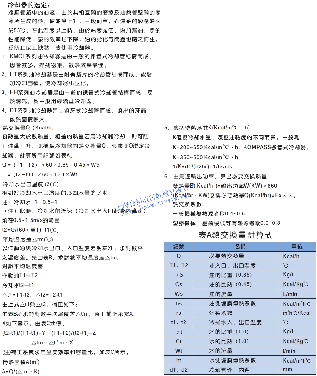 HEAT TRANS AREA m2DT-649 2" 1" 4.9 DT-657 5.7 DT-668 6.8 DT-682 8.2 DT-6104 10.4 冷卻器的選定