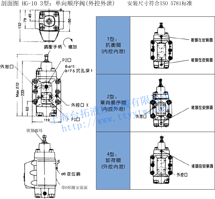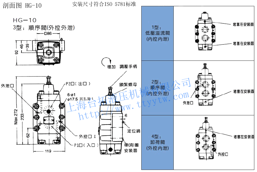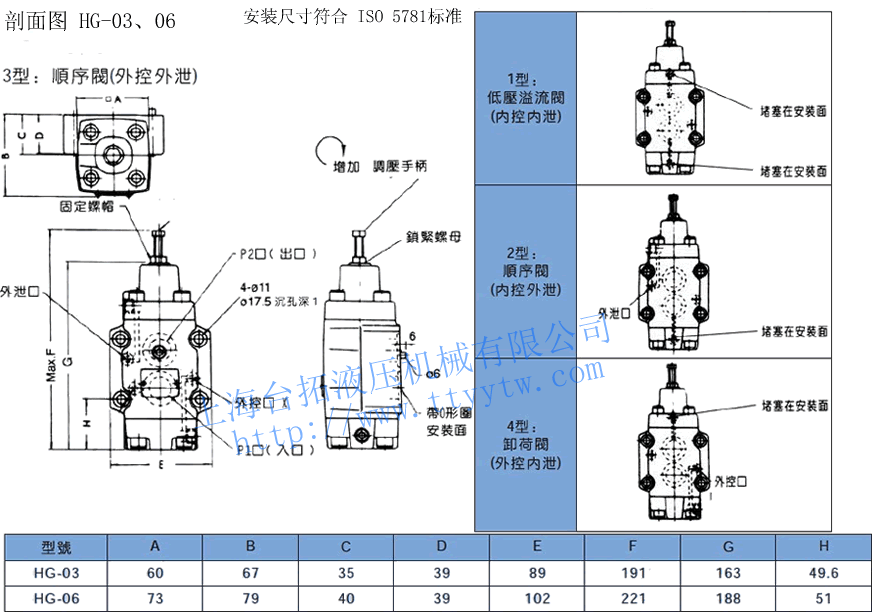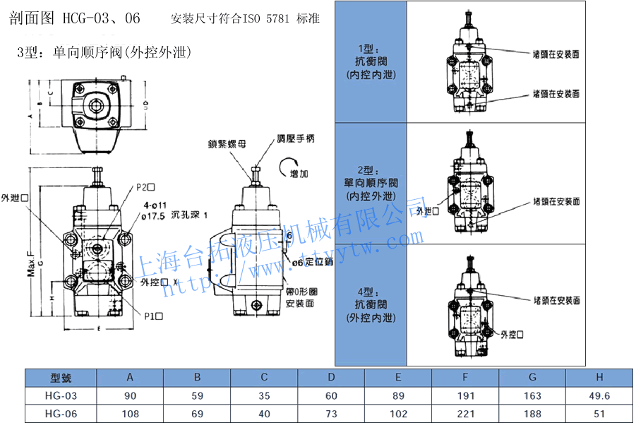順序閥抗衡閥卸荷閥HG,HT,HCG,HCT剖面圖