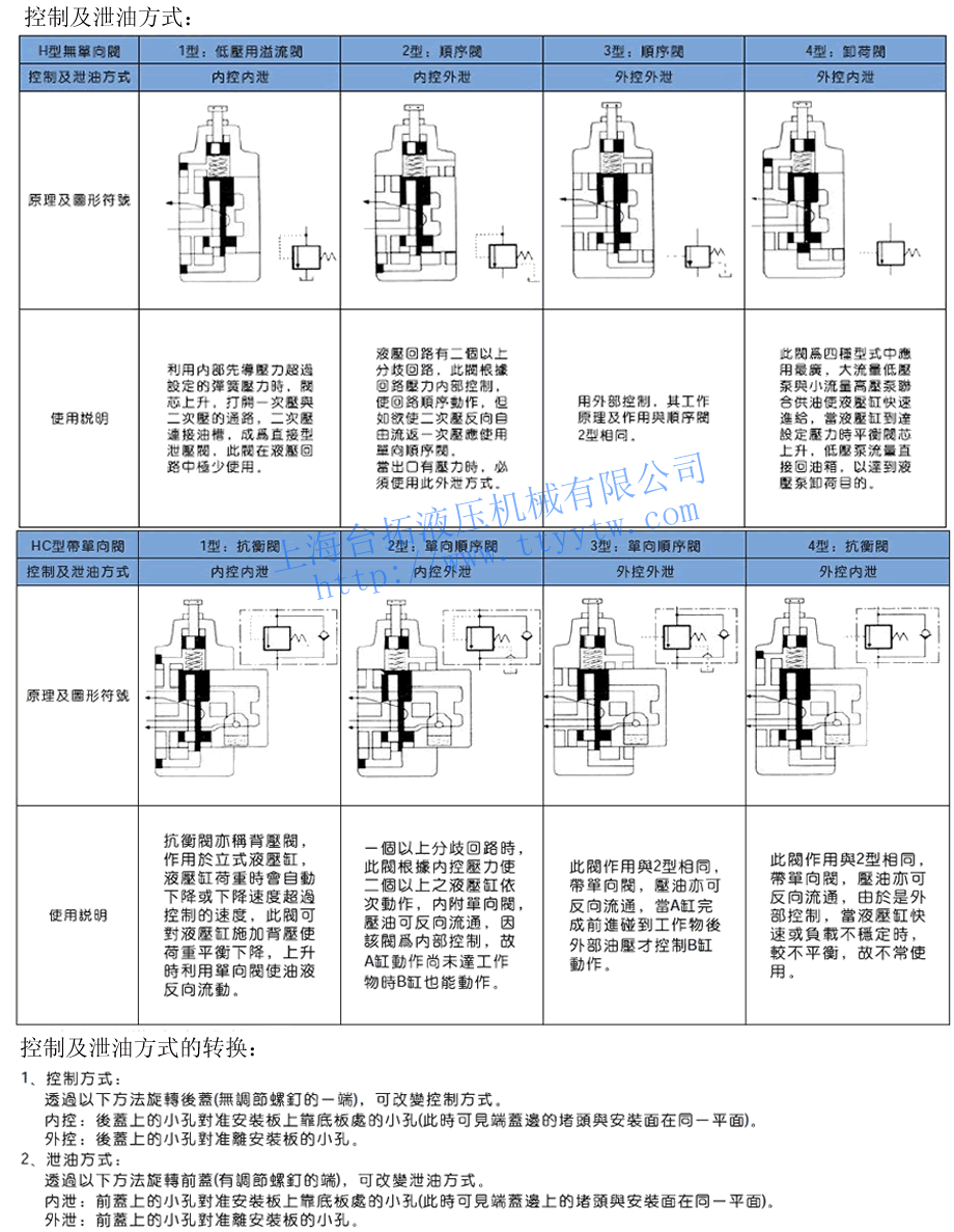 1、順序閥抗衡閥卸荷閥HG,HT,HCG,HCT是帶有控制油孔的直動(dòng)閥,可以內(nèi)控或外控??筛鶕?jù)不同的組合產(chǎn)生不同功能的低壓用溢流閥、抗衡閥、卸荷閥及卸荷閥。