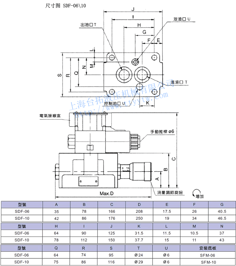 SDF -06 - D4-02-2B2-A2 系列號碼 規(guī)格 附注 搭配電磁閥規(guī)格 電磁控制調(diào)速閥 06
