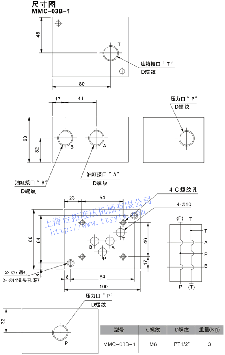 標(biāo)準(zhǔn)型油路塊MMC-03B-1尺寸圖下載 標(biāo)準(zhǔn)型油路塊MMC-03B-*尺寸圖下載