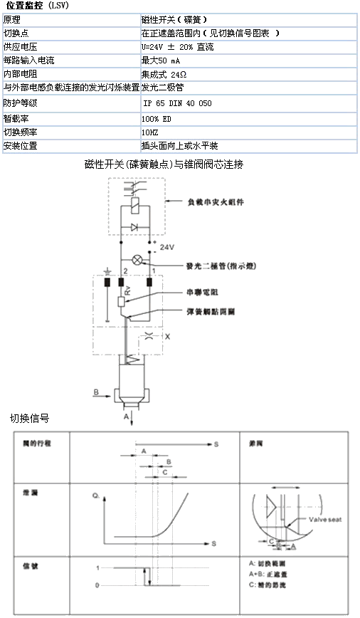 V:氟橡膠10 二通插裝式安全閥LSV特性及位置監(jiān)控