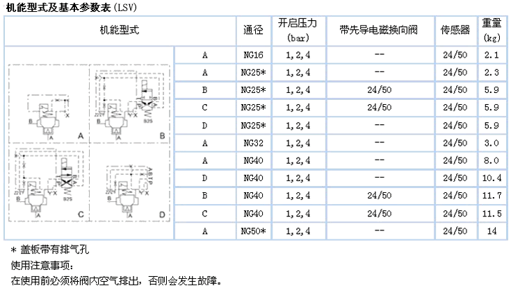 二通插裝式安全閥LSV機(jī)能型式及參數(shù)