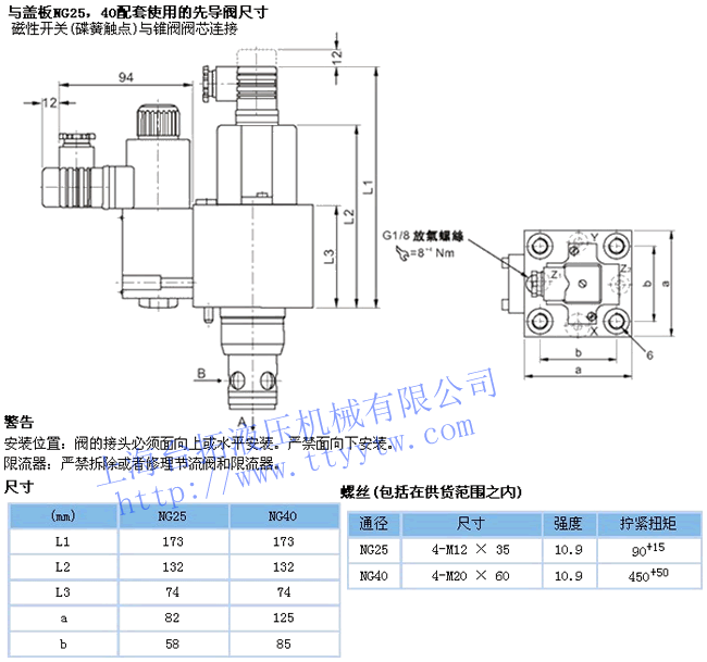 二通插裝式安全閥與蓋板NG2540配套使用的先導(dǎo)閥尺寸