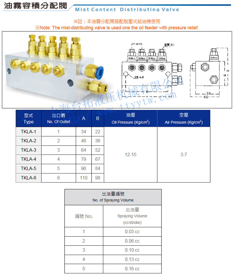 產(chǎn)品型號:油霧容積分配閥TKLA型
