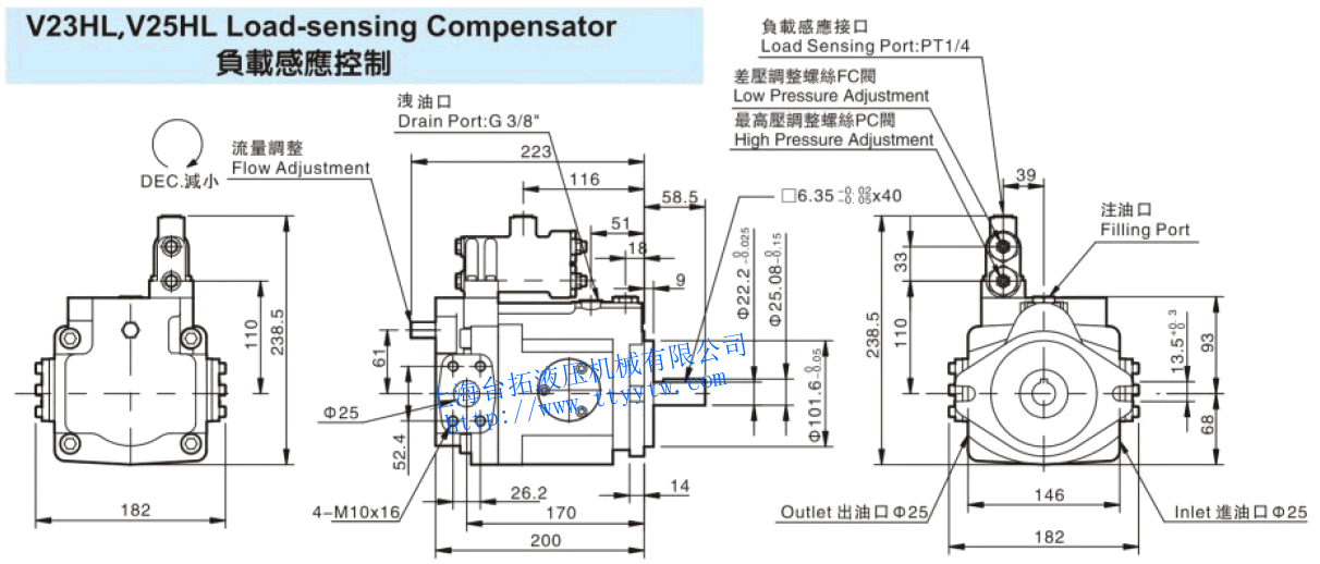 變量柱塞泵V23F,V25F尺寸圖下載 變量柱塞泵V23FG,V25FG尺寸圖下載
