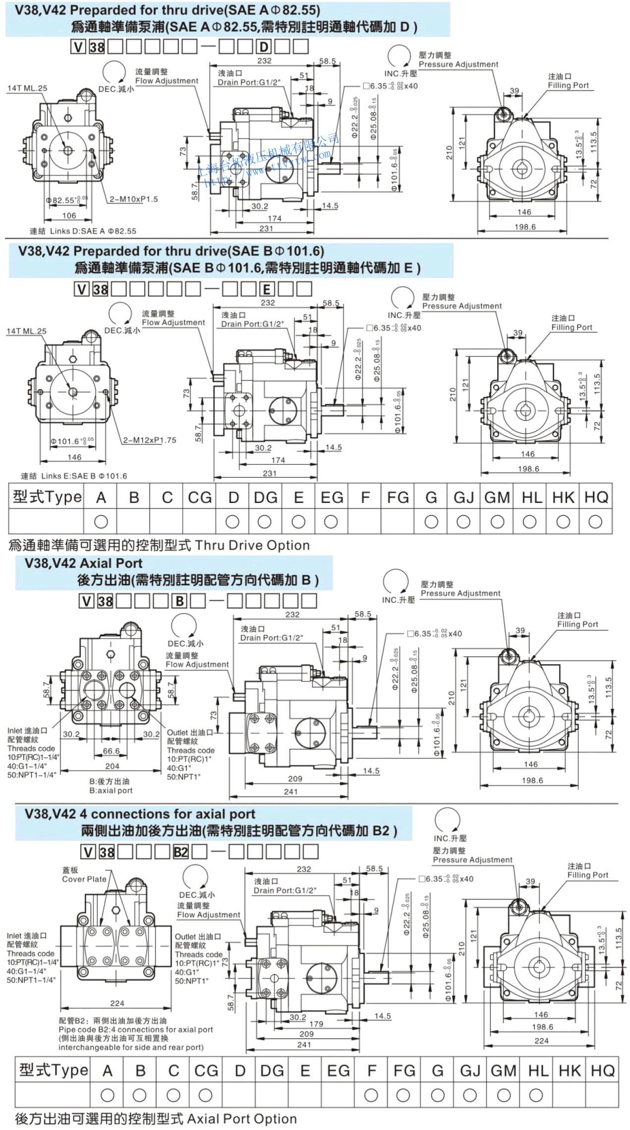 變量柱塞泵V38G,V42G尺寸圖下載 變量柱塞泵V38GJ,V42GJ尺寸圖下載