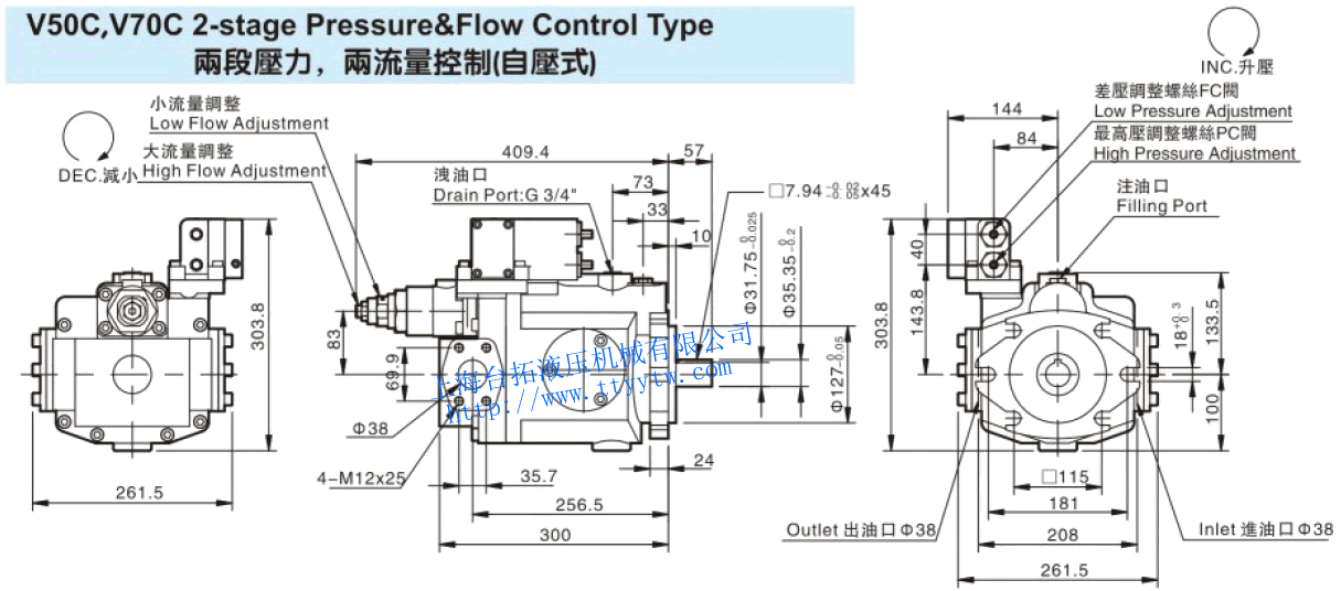 變量柱塞泵V23C,V25C尺寸圖下載 變量柱塞泵V23CG,V25CG尺寸圖下載