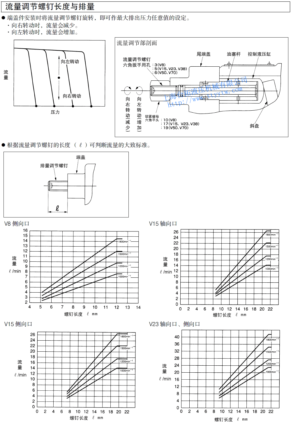 變量柱塞泵V系列排量調(diào)節(jié)螺釘長度與流量