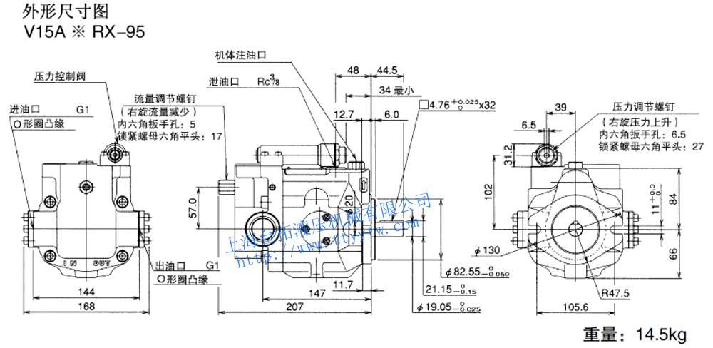 變量柱塞泵V15A3R-95RC尺寸圖下載 變量柱塞泵V15C**RHX-95尺寸圖下載