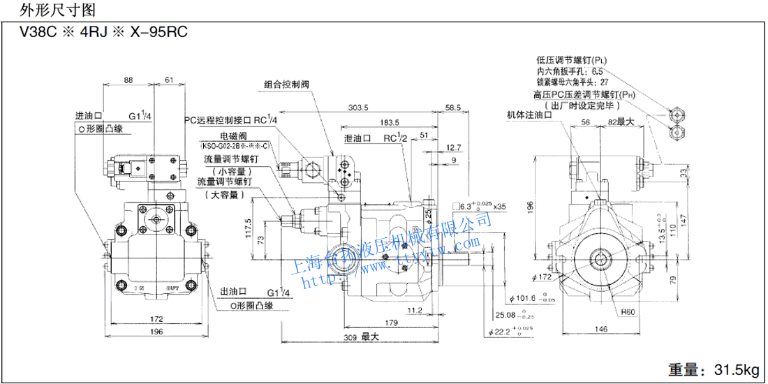 變量柱塞泵V38C**RJ*X-95尺寸圖下載 變量柱塞泵V38C*4RJ*X-95RC尺寸圖下載
