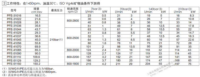 PFE系列高性能葉片泵主要參數(shù)