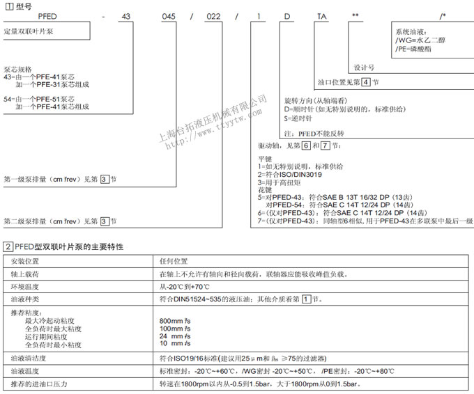 雙聯葉片泵PFED工作特性油口排列