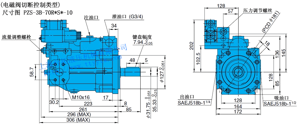變量柱塞泵PZS-5B-130N*Q*-10尺寸圖下載 變量柱塞泵PZS-3B-70R*S*-10尺寸圖下載
