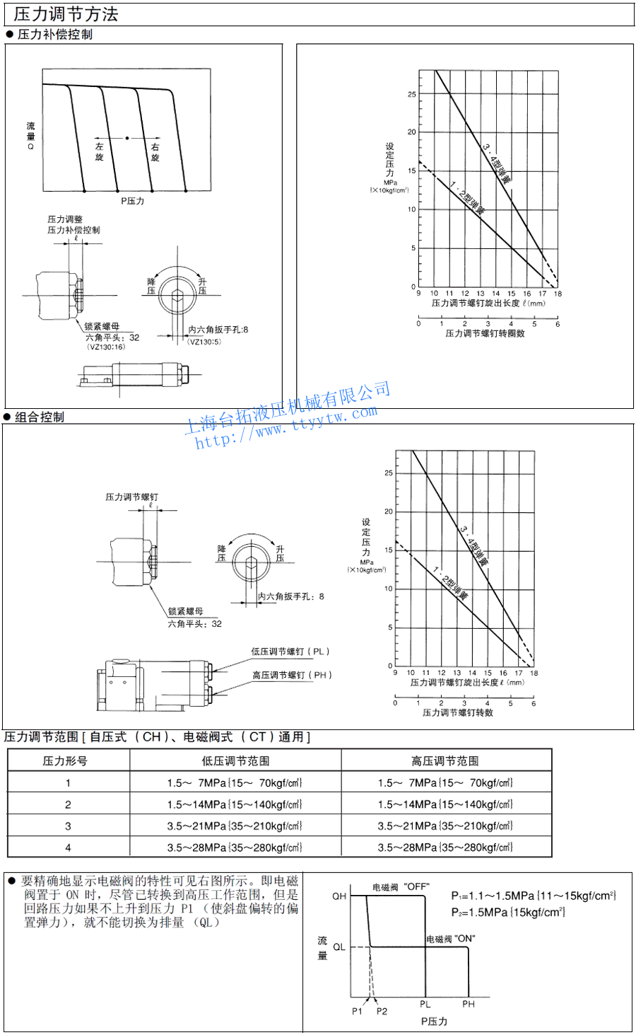 Kg最高 額定 VZ50 50.2 28 25 500~1800 0~90 40 VZ63 63.0 28 25 500~1800 0~113 47 VZ80 79.6 28 25 500~1800 0~143 55 VZ100 104.6 28 25 500~1800 0~188 75 VZ130 135.9 21 17.5 500~1800 0~244 105 變量柱塞泵VZ壓力調(diào)節(jié)方法