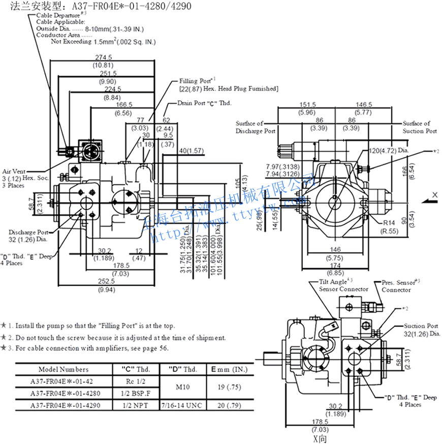 (145cm3/rev)60 60 備注:★1.可提供逆時(shí)針旋轉(zhuǎn)比例變量柱塞泵。★2.控制壓力請(qǐng)與控制壓力單位相符?!?.可選用于接雙泵的型號(hào),有A,B兩種接口型式,提供這樣可接雙泵的接口是為客戶特別需要時(shí)用。如只用單比例變量柱塞泵型式請(qǐng)選A型。除A16、A22泵以外,可安裝以下第2泵:a.A37/A45/A56型(無標(biāo)記):安裝部?jī)?nèi)徑82.55mm(A16、A22、PV1R1)。b.A70/A90/A100/A145型(標(biāo)記A):安裝部?jī)?nèi)徑82.55mm(A16、A22、PV1R1)。c.A70/A90/A100/A145型(標(biāo)記B):安裝內(nèi)部?jī)?nèi)徑101.6mm(A37、PV1R2)。