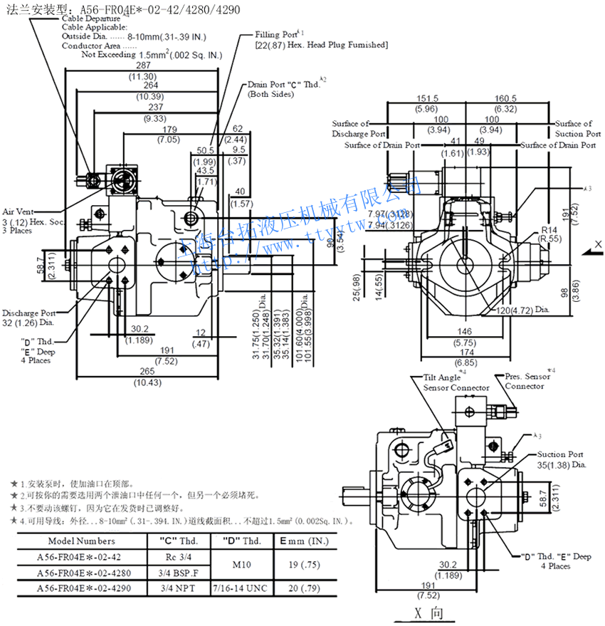 比例變量柱塞泵A56-FR04E*-02-42/4280/4290尺寸圖下載 比例變量柱塞泵A70-FR04E88-60/6080/6090尺寸圖下載